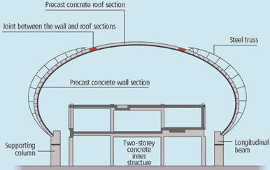 The vaulted roof of the new showcase terminal at paris charles de gaulle airport touted as a jewel of design safety and comfort caved in as passengers arrived sunday morning.